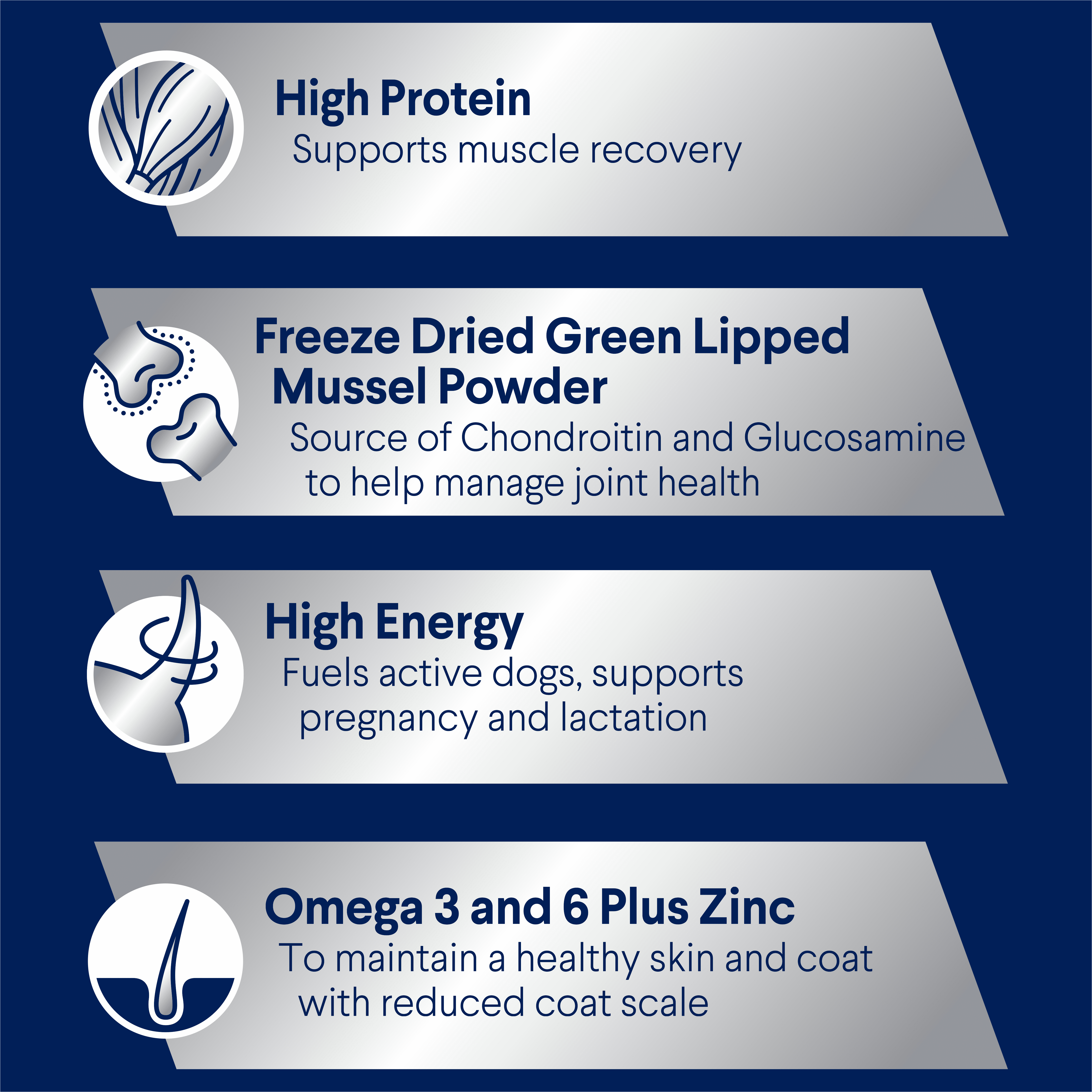 Formulated with science but made with love, this carefully-selected formula is high protein and high energy, tailored to support active, working and sporting adult dogs while supercharging their muscle recovery.