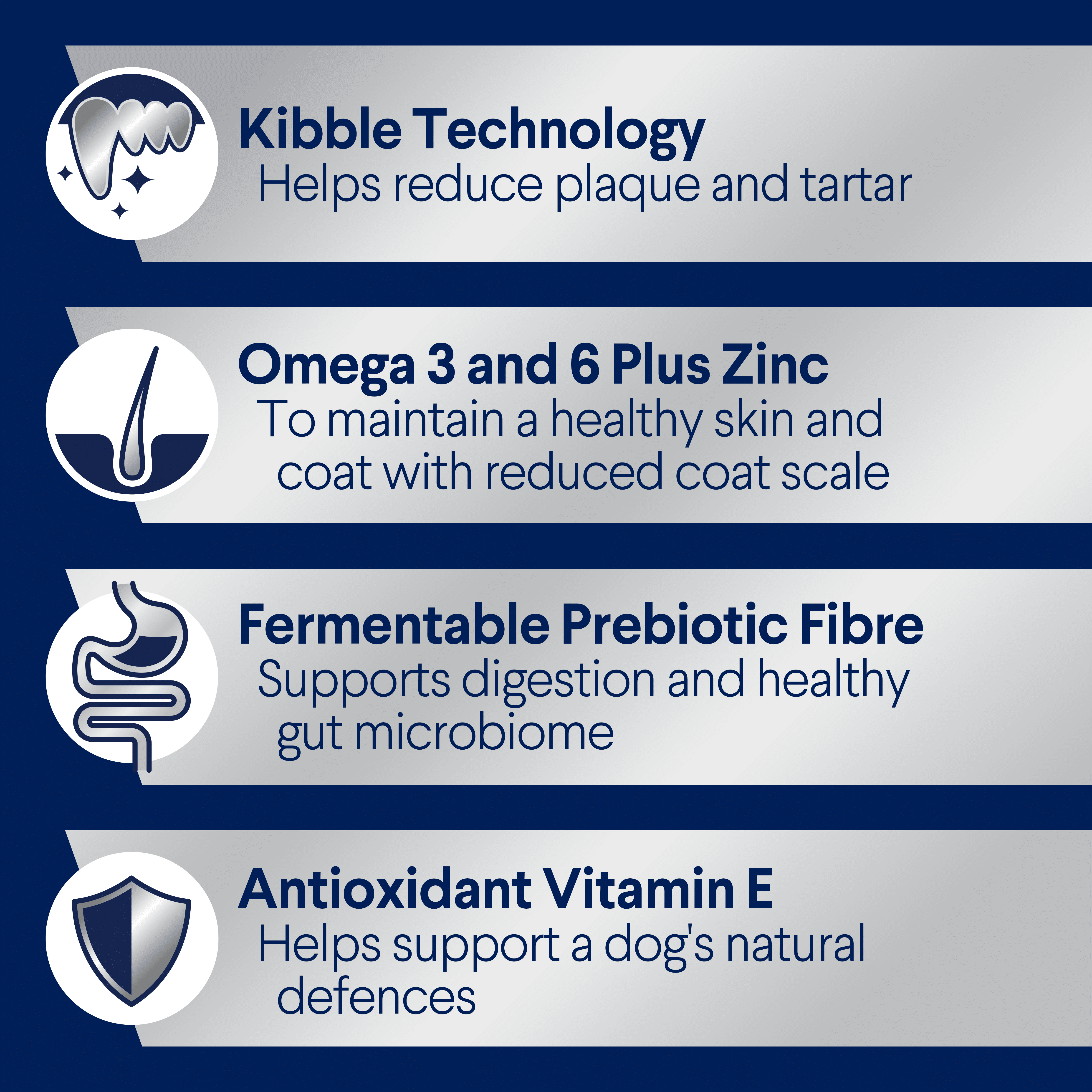 Keep your older friend healthy and happy with a diet that's tailored to them. Packed with nutrients, antioxidants and prebiotic fibres for adult maintenance feeding, they'll have better dental health, a balanced gut and a shiny coat.