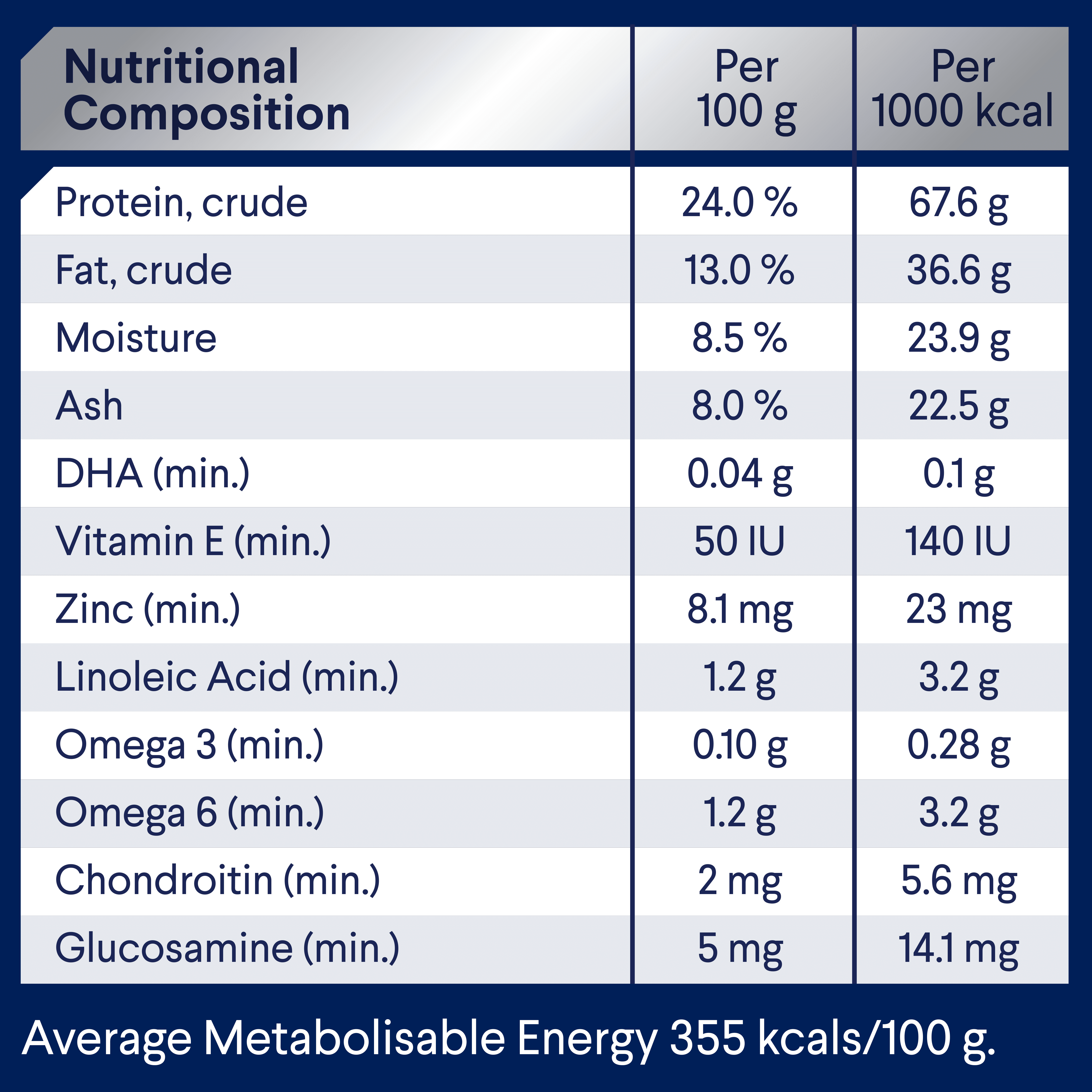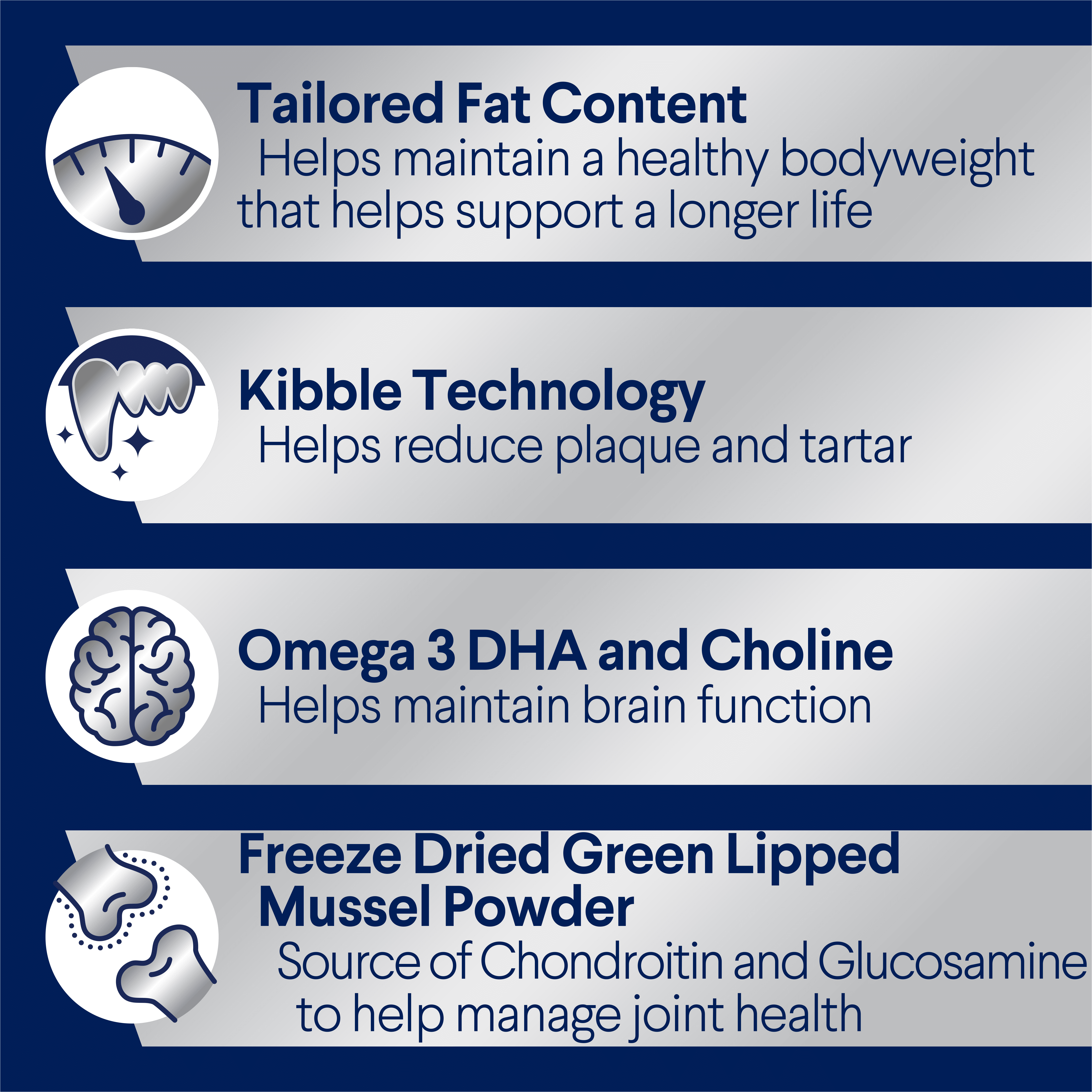 Helps maintain brain function Chondriotin and Glucosamine to help manage joint health
