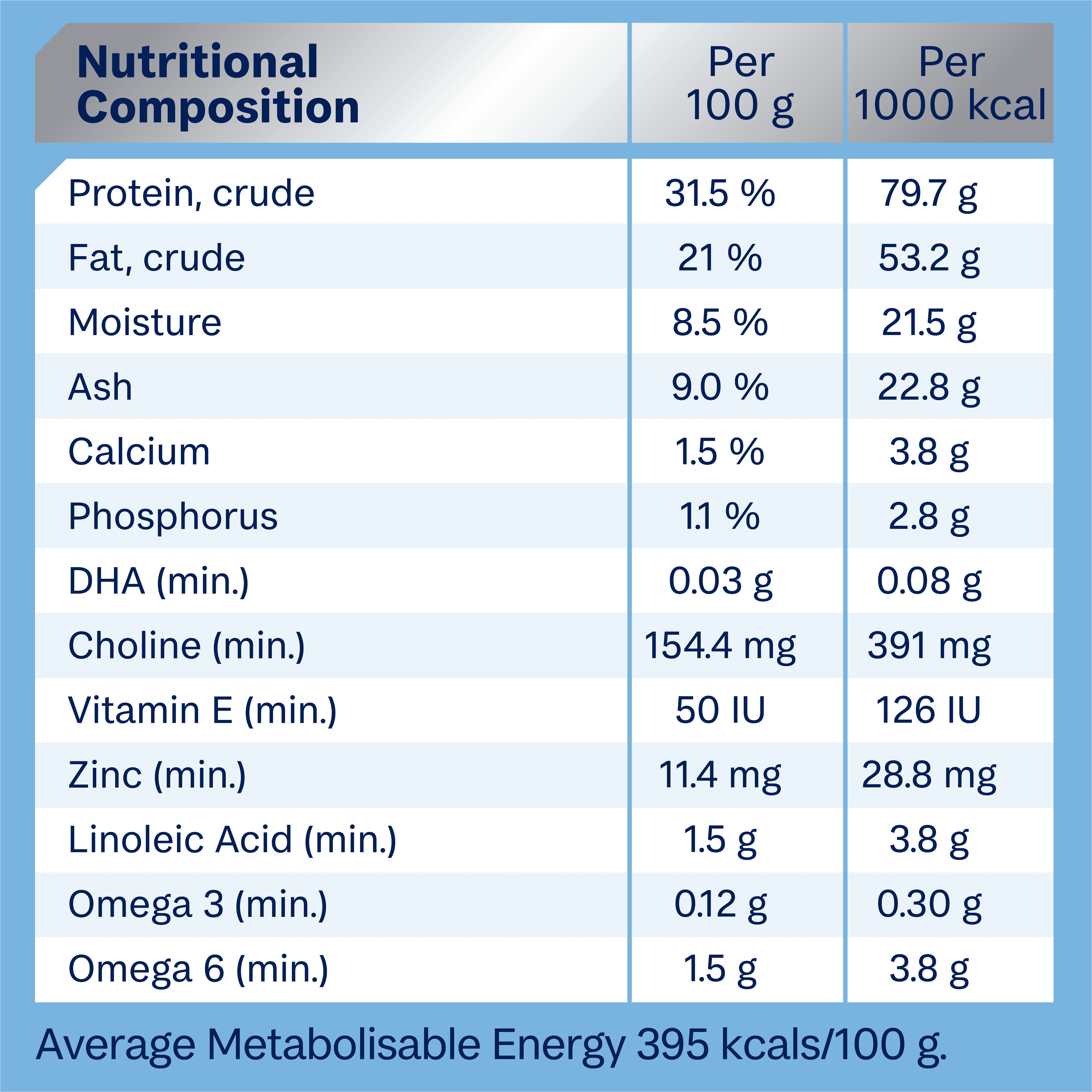 Nutrient dense and highly digestible to support the demanding life stage of pregnancy/ lactation