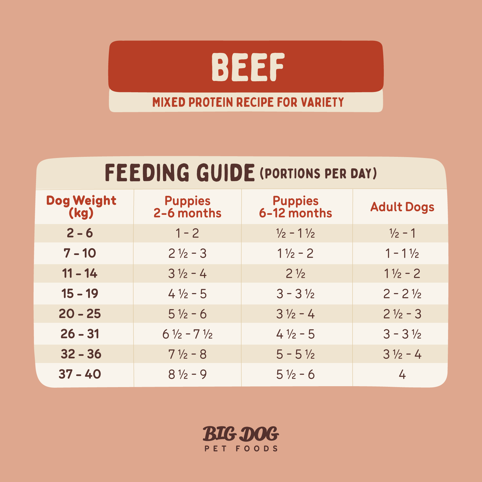 Puppies 2–6 Months (Portions per Day)