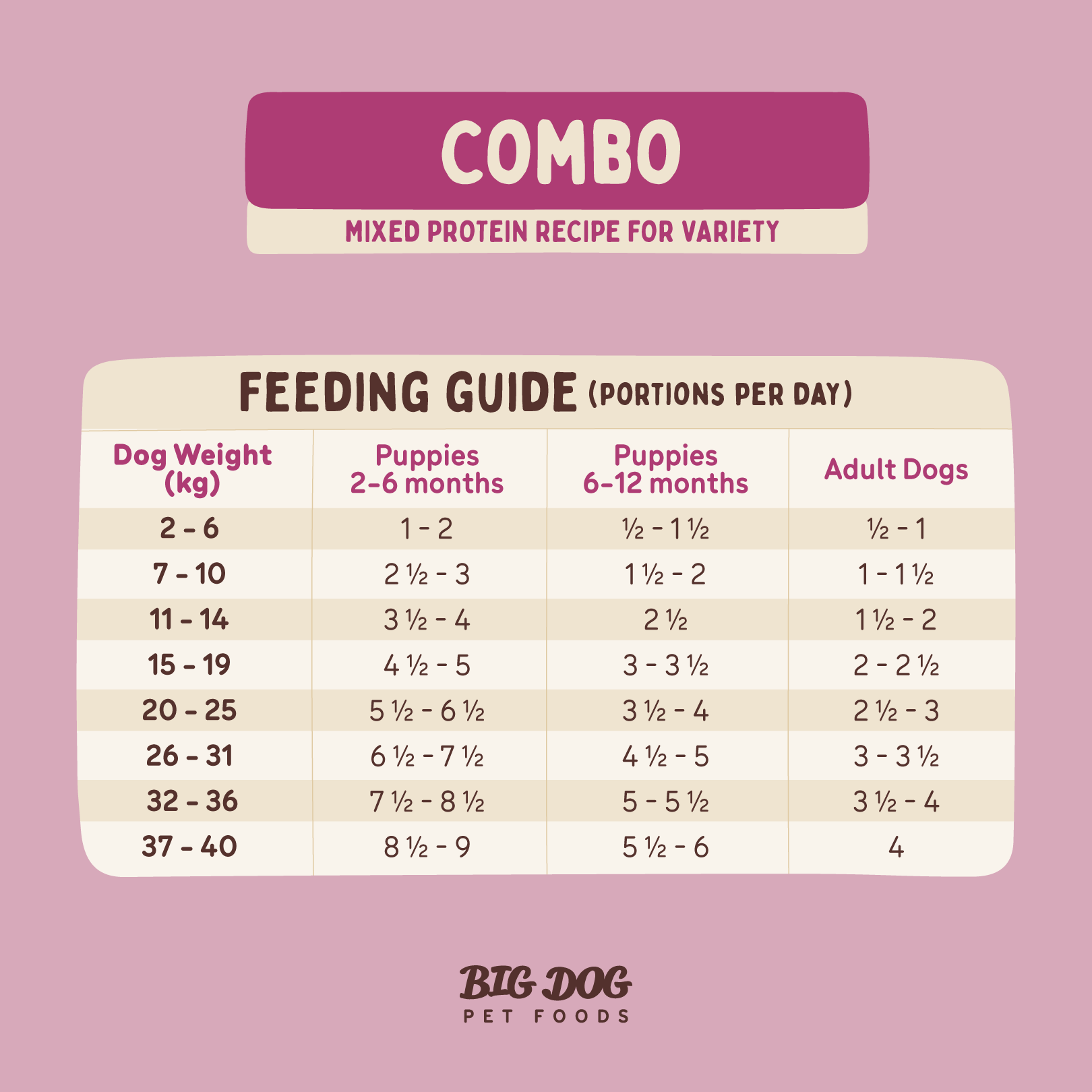 Big Dog Combo is Complete and Balanced by AAFCO standards for healthy growth in puppies and maintaining health in adult dogs.