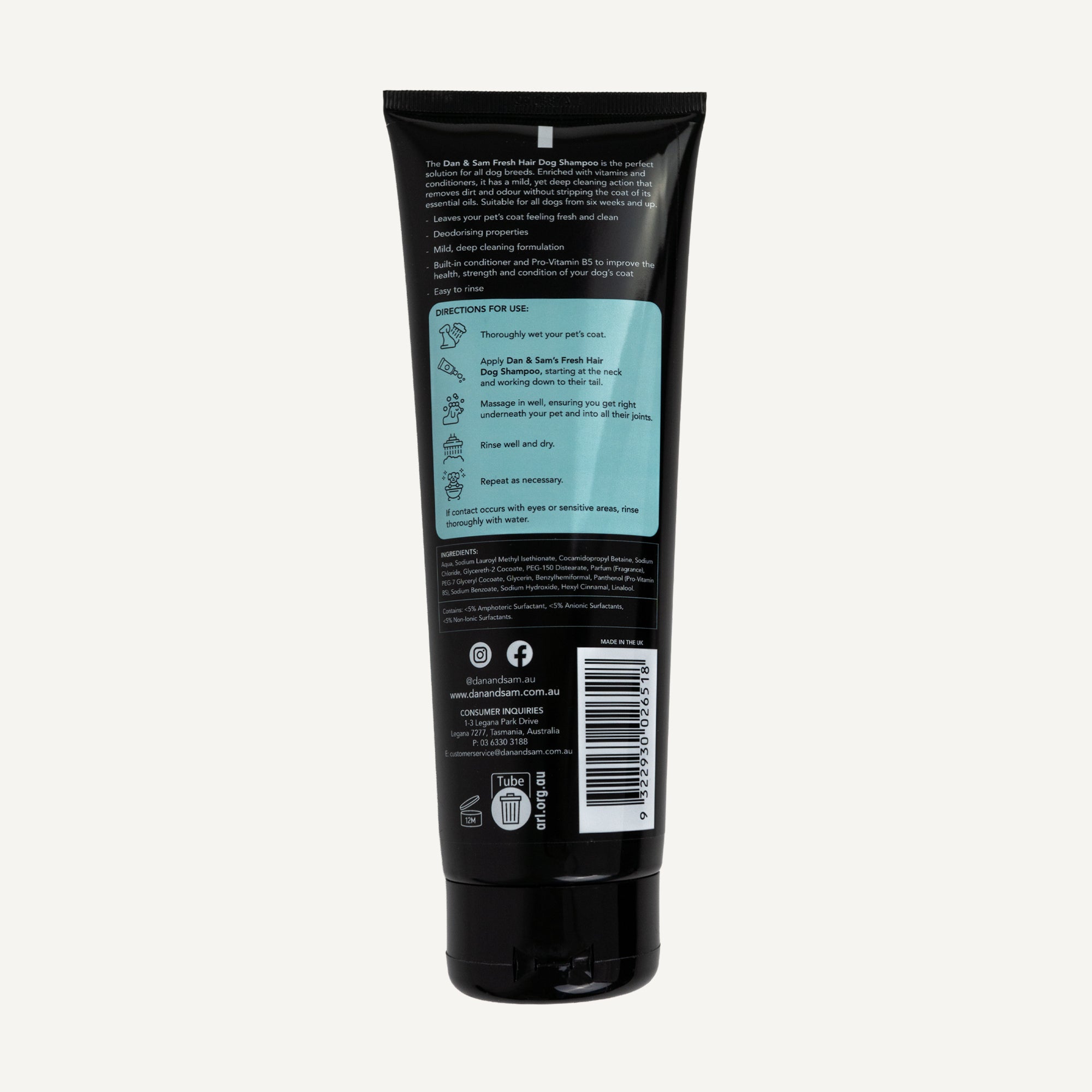 2. Apply Dan & Sam’s Fresh Hair Dog Shampoo, starting at the neck and working down to their tail.