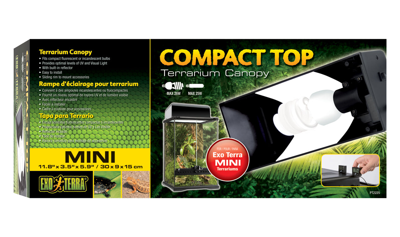 The Exo Terra Compact Top Canopy is a compact fluorescent terrarium canopy designed for use with the Exo Terra Glass... Read more