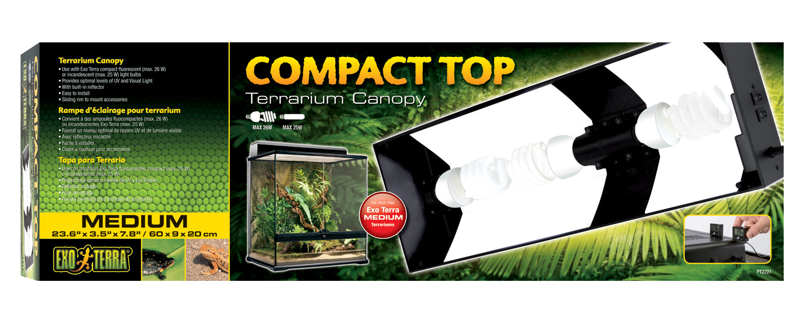The Exo Terra Compact Top Canopy is a compact fluorescent terrarium canopy designed for use with the Exo Terra Glass... Read more