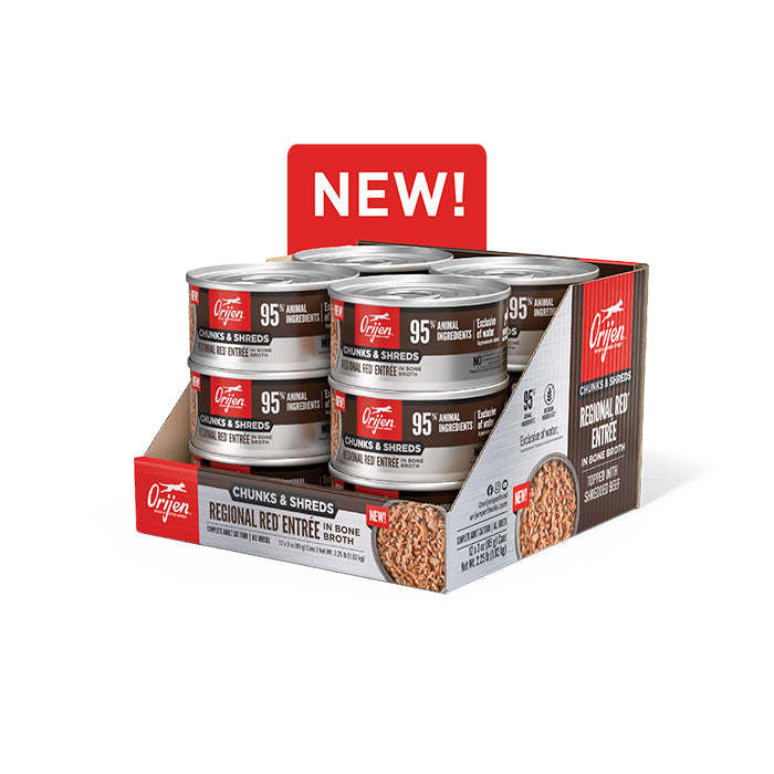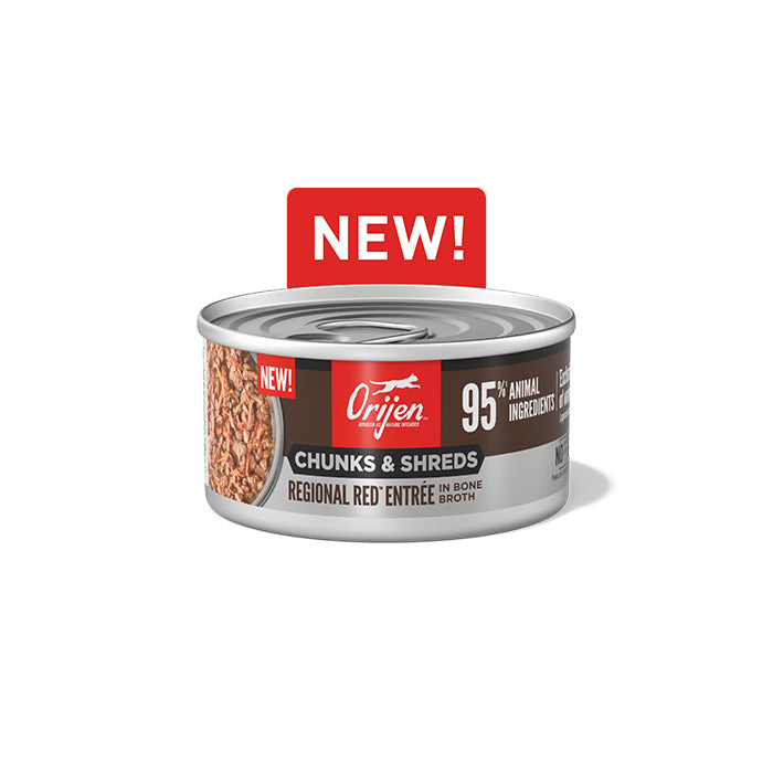 Nourish your cat with the texture and variety of raw animal ingredients packed into every can of ORIJEN™ Chunks & Shreds.