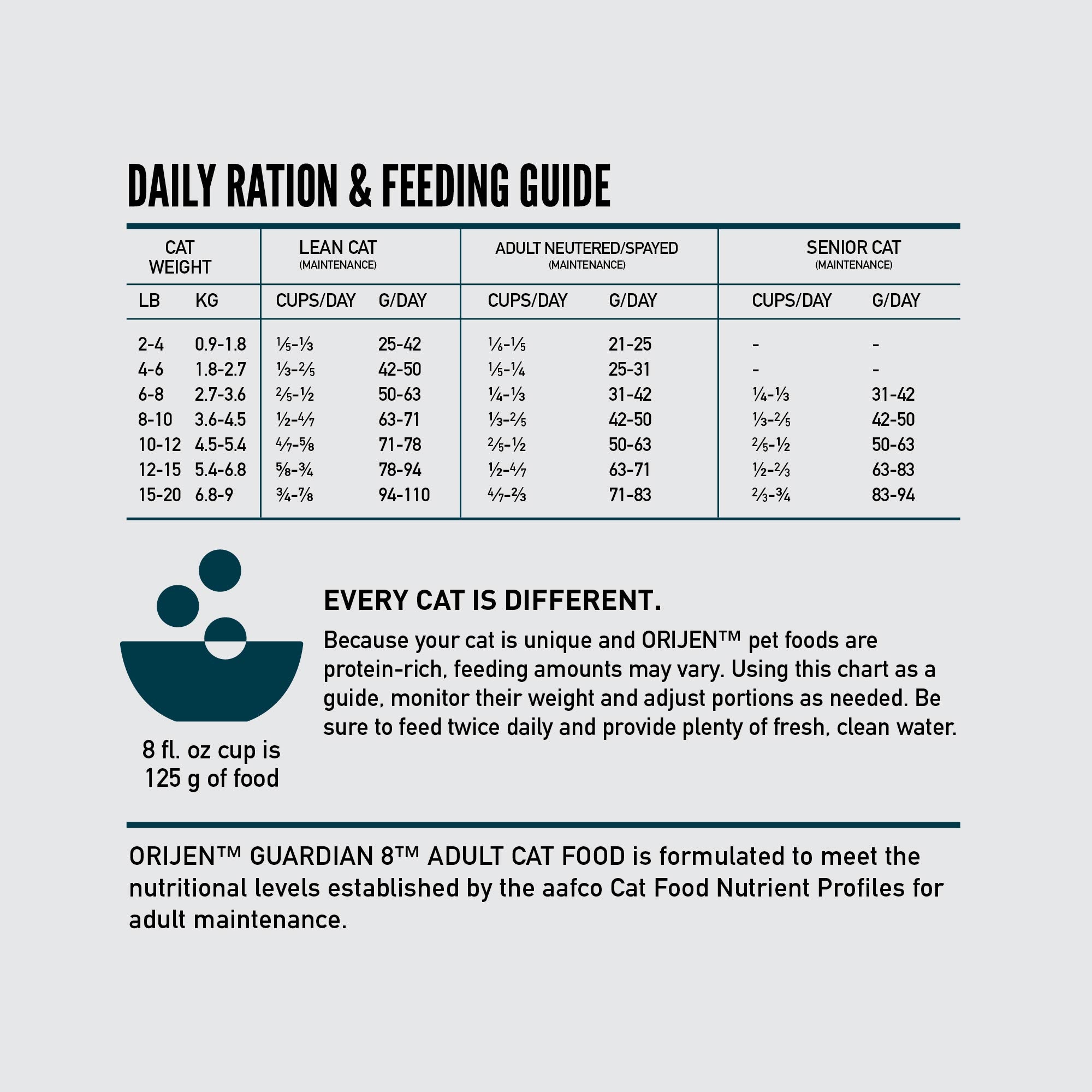 Help your adult cat thrive with the power of protein-rich ORIJEN GUARDIAN 8 Dry Cat Food with Fresh and Raw* Animal Ingredients.