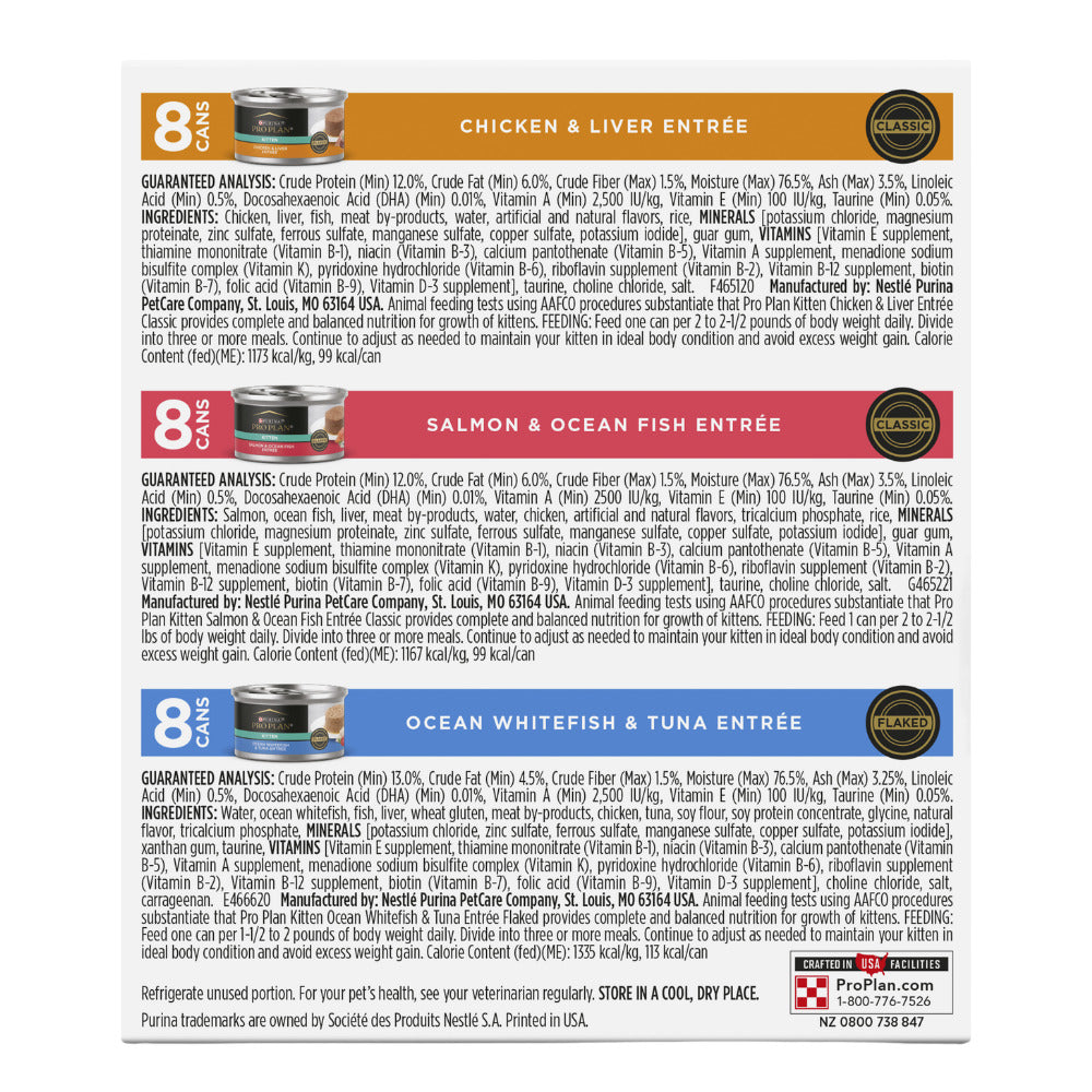 •Made with real chicken, liver, salmon, ocean fish, ocean whitefish or tuna, for a taste kittens love