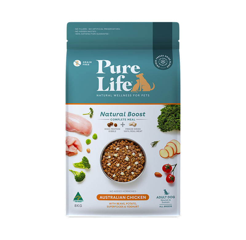 Pure Life’s Natural Boost range of dog and cat has a mix of high protein kibble and freeze dried 100% real meat, uniquely crafted with the essential all-round nutrition that contributes to every aspect of pet health in a complete meal.