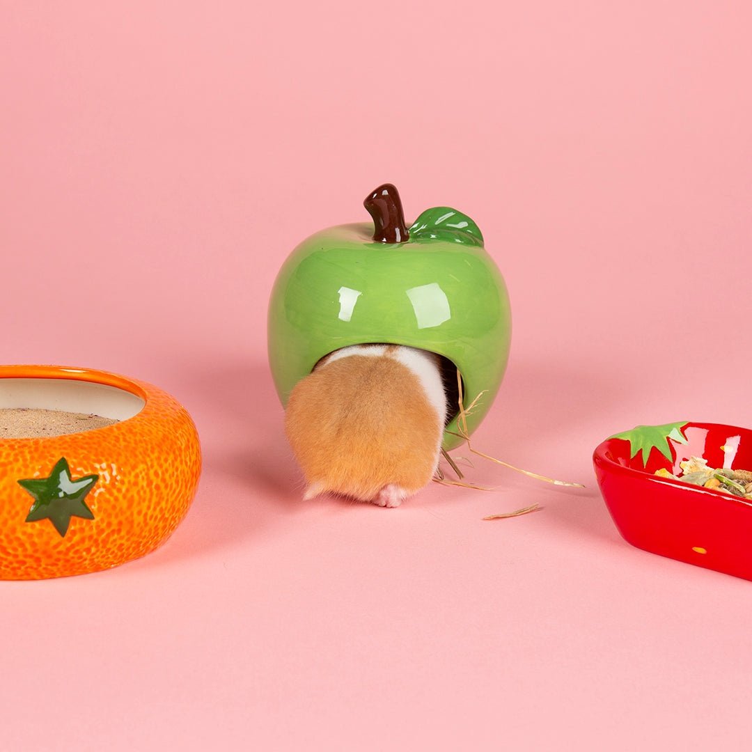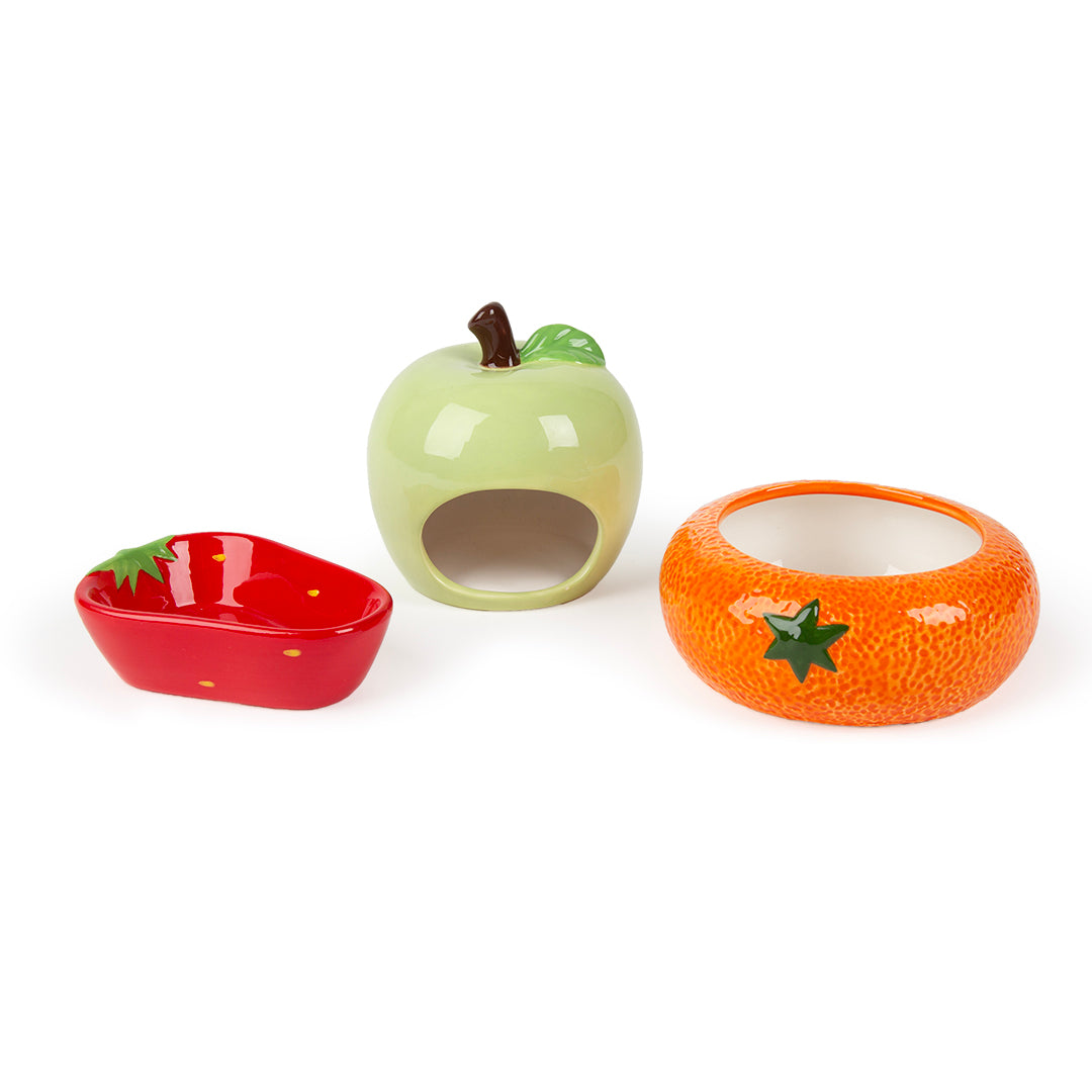 Made from ceramic, this Fruit small animal set is cute and sturdy. Hand wash only.