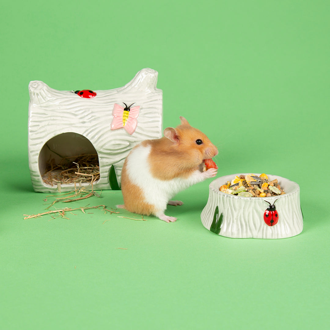 The Scruffs Small Pet Sets have been designed with your small pet's health and wellbeing in mind. Featuring shelters for sleeping, food bowls and either a sand bath or water well, the sets not only ensure that pets sleep, feed, drink or clean themselves more naturally, but also bring a sense of fun and whimsy to small animal cages.