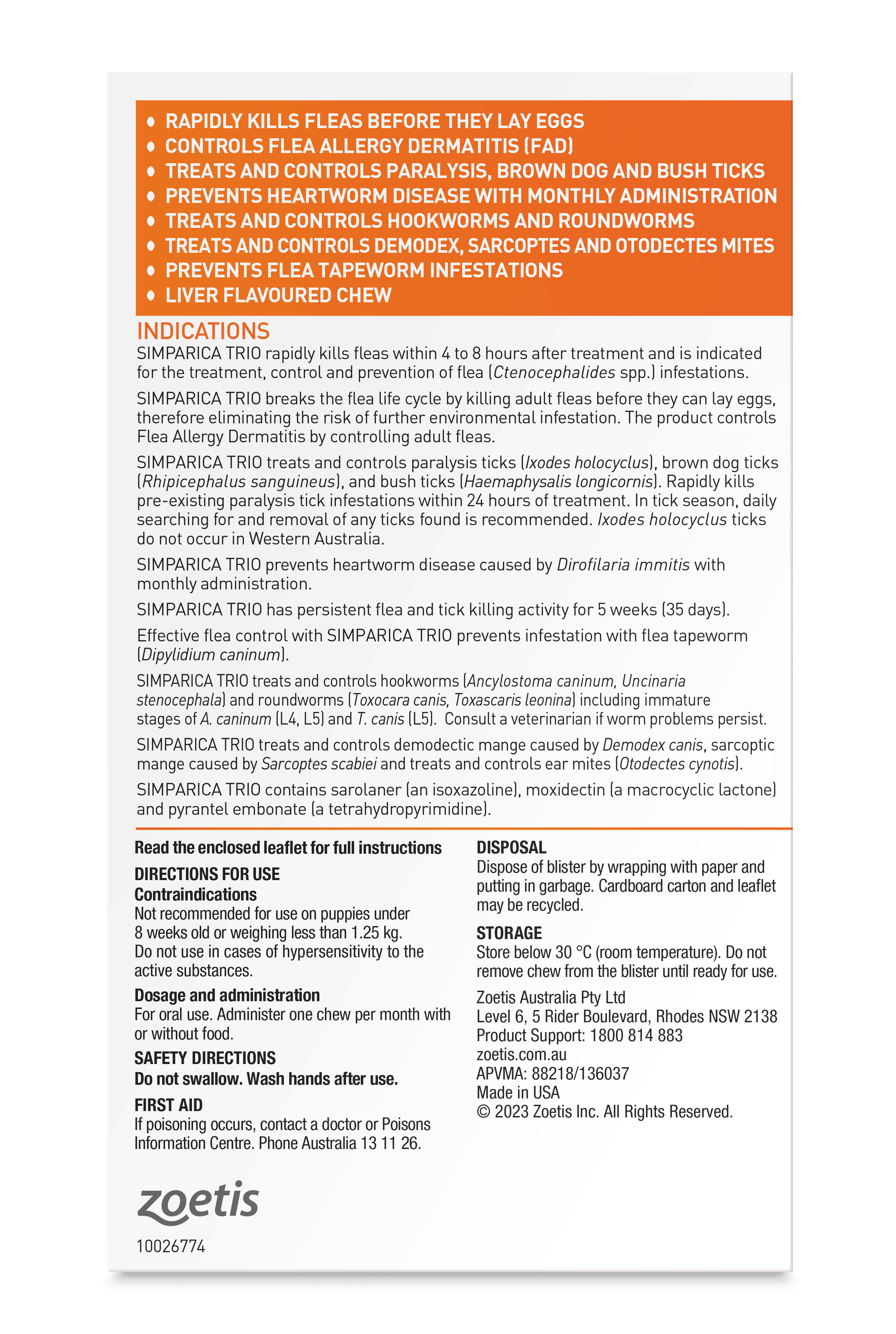 • Kills flea infestations, as well as ticks (Brown, Bush and the deadly Paralysis Tick), for the full month.