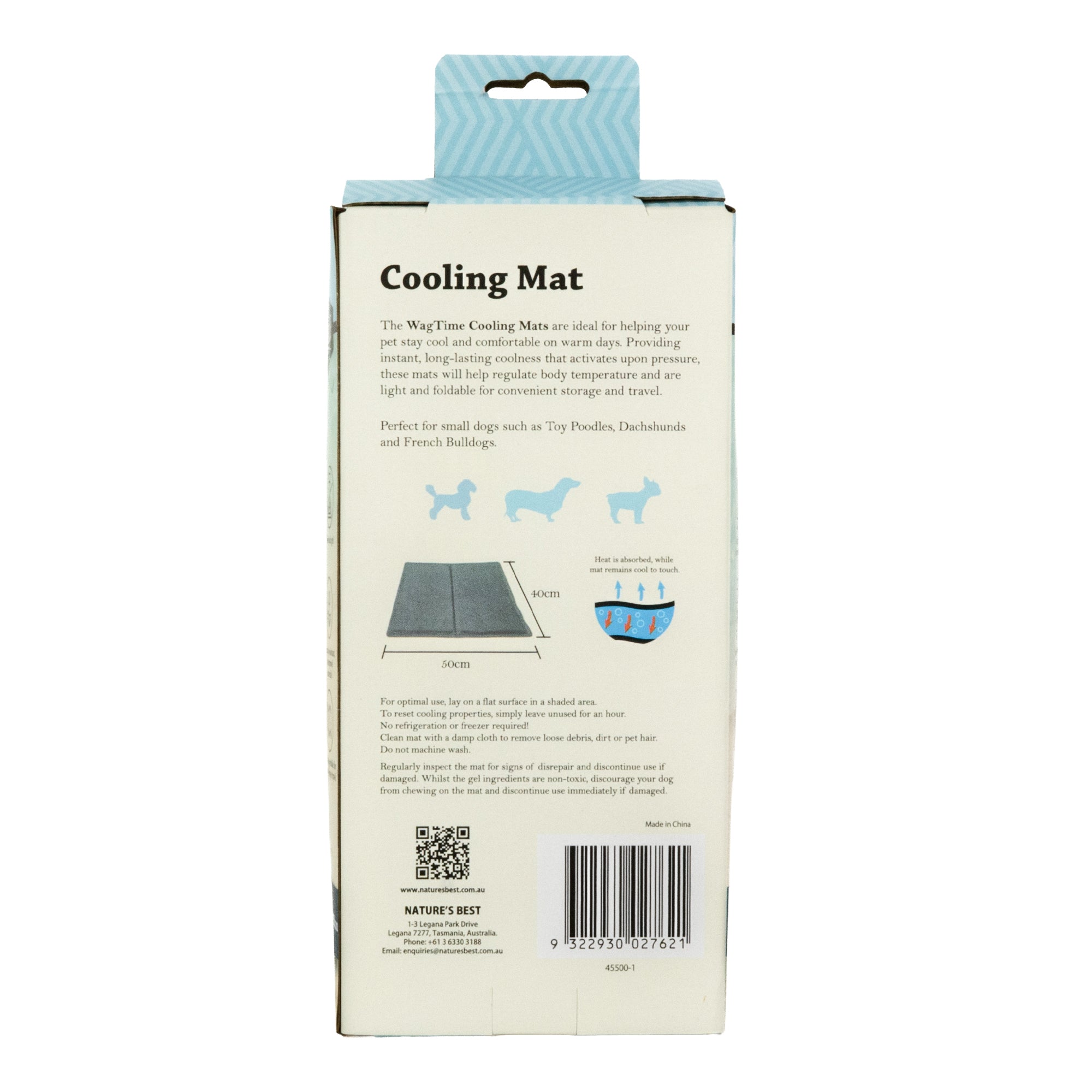 The WagTime Cooling Mat- Small is a self-cooling mat with a non-toxic gel inner lining, ideal for keeping your pet cool on warm days.