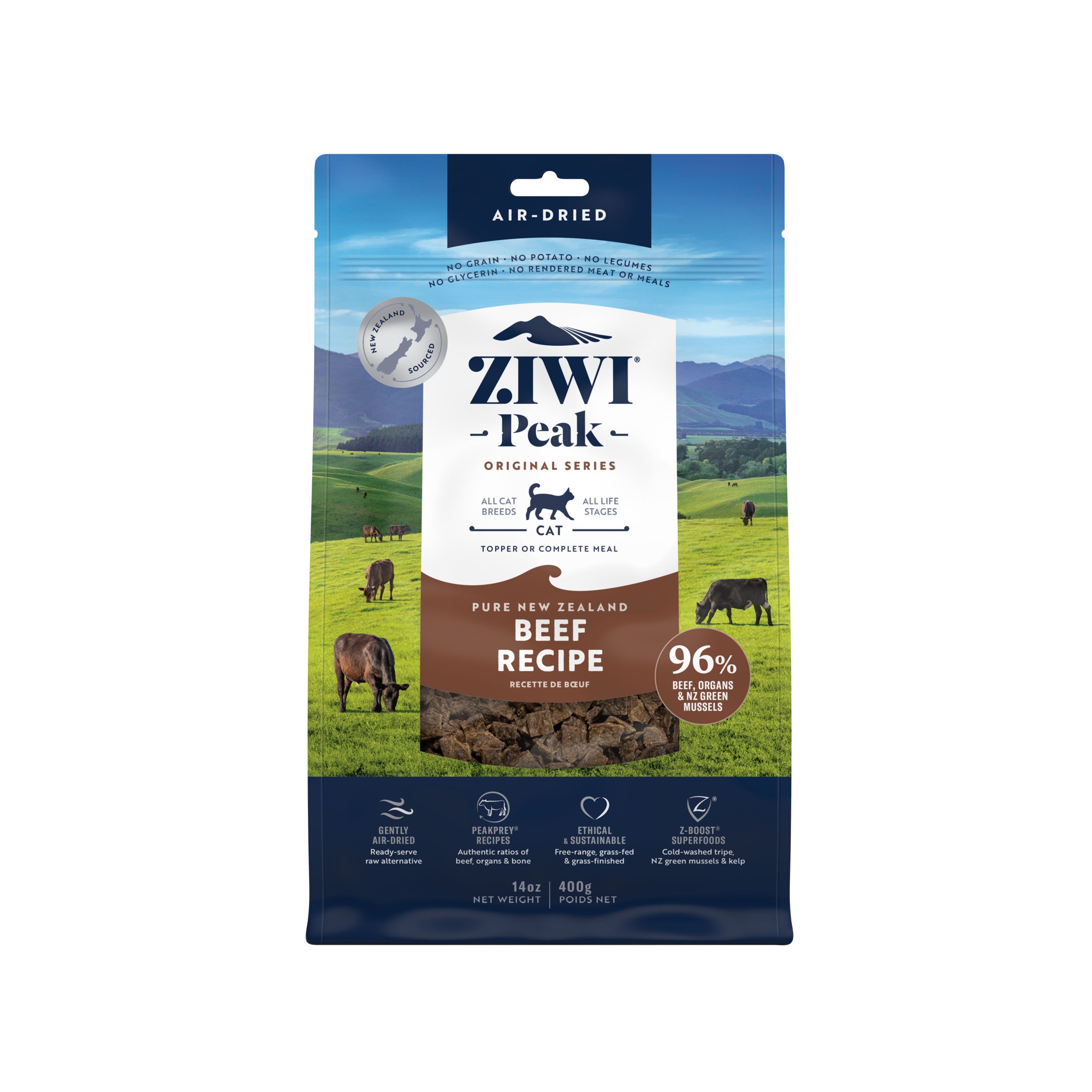 HIGH PROTEIN, NUTRIENT DENSE: Authentic PeakPrey ratios, featuring 96% free-range and grass-fed beef, organs, bone, and New Zealand green mussels. Safely air-dried ingredients to protect the nutritional integrity of the ingredients.
